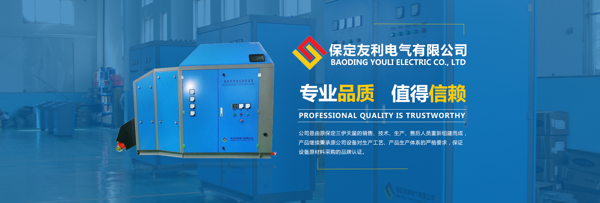 “保定友利電氣有限公司”成立于2020年5月,公司園區(qū)坐落在交通便利、環(huán)境優(yōu)美的保定國(guó)家高新技術(shù)產(chǎn)業(yè)開(kāi)發(fā)區(qū)。由原“保定三伊天星”的銷(xiāo)售、技術(shù)、生產(chǎn)、售后人員重新組建而成,產(chǎn)品秉承并提升了原公司設(shè)備的生產(chǎn)工藝、對(duì)產(chǎn)品生產(chǎn)體系要求更加嚴(yán)格,保證設(shè)備原材料采購(gòu)的品牌認(rèn)證。 公司注重新產(chǎn)品的研發(fā)與應(yīng)用,自公司成立以來(lái),先后與河北農(nóng)業(yè)大學(xué)機(jī)電院、河北大學(xué)電子信息工程學(xué)院-胡聰權(quán)教授、中科院電工研究所共同技術(shù)合作;第一、對(duì)原三伊設(shè)備進(jìn)行了工藝和控制...