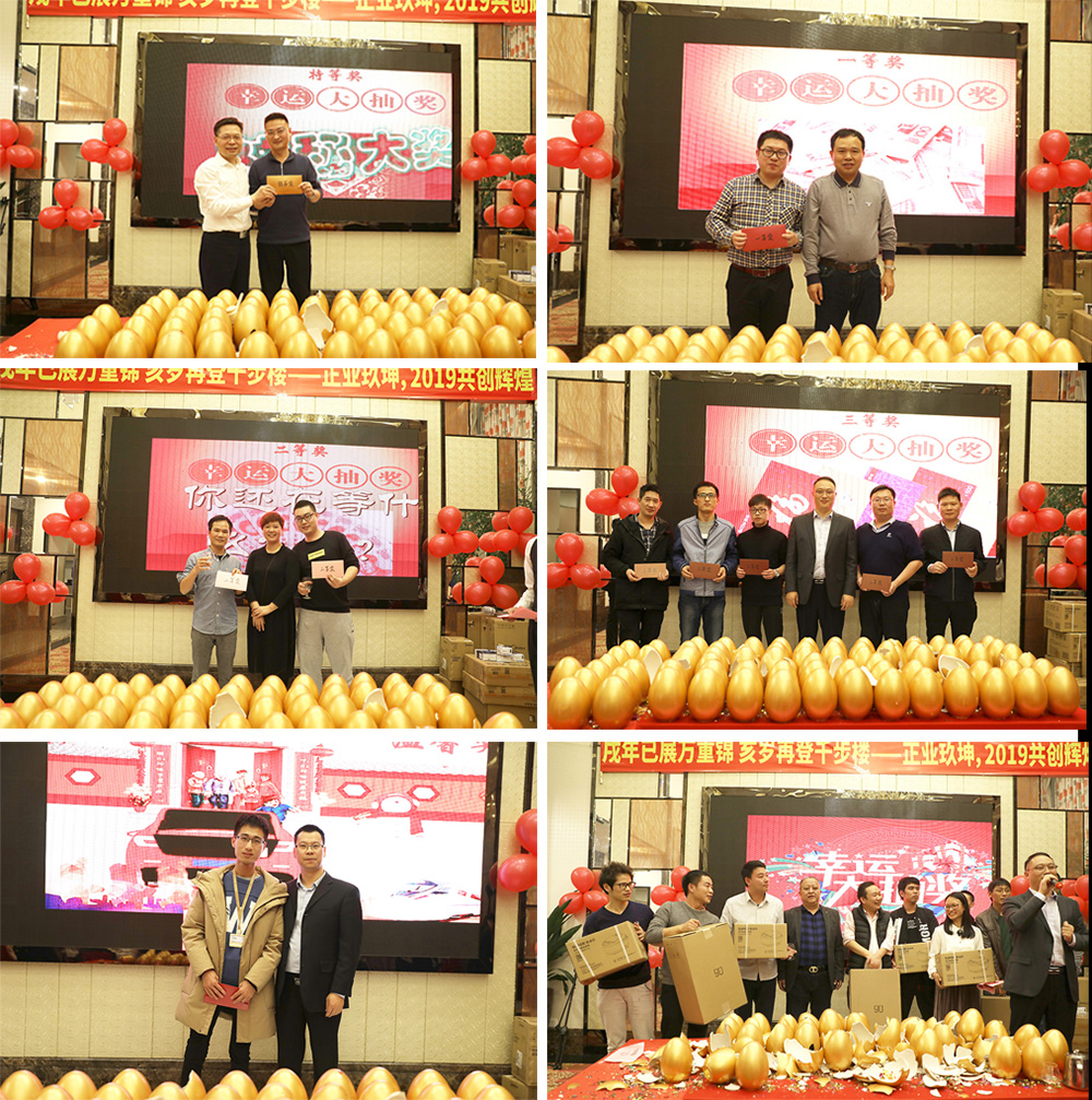 表彰環(huán)節(jié)結(jié)束后,迎來了一場場砸金蛋大抽獎(jiǎng),嗨翻全場,設(shè)置的獎(jiǎng)項(xiàng)有特等獎(jiǎng)、一等獎(jiǎng)至四等獎(jiǎng)、正業(yè)科技贊助獎(jiǎng)以及幸運(yùn)獎(jiǎng)。