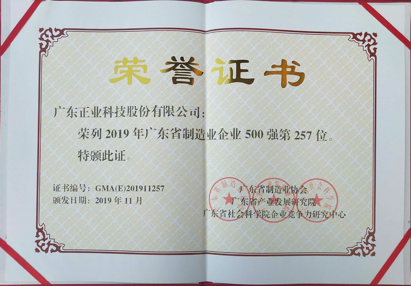 正業(yè)科技榮列“2019年廣東制造業(yè)企業(yè)500強(qiáng)”榜單,這充分彰顯了公司在制造領(lǐng)域深耕細(xì)作,所表現(xiàn)出來(lái)的卓越綜合實(shí)力和強(qiáng)大市場(chǎng)競(jìng)爭(zhēng)力。
