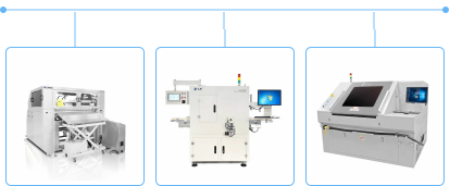 ▲依次是半固化片無塵自動(dòng)裁切機(jī)、全自動(dòng)X光檢查機(jī)、UV激光切割機(jī)