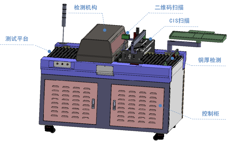 自動化檢測平臺搭載面銅探頭正反面同時檢測。