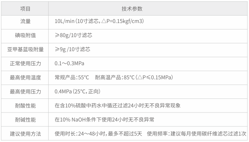 可適用于飲用水處理,除味脫色、除去余氯、吸附有機(jī)污染物,同時(shí)對液體中的固體微粒雜質(zhì)有一定過濾作用,亦廣泛適用于PCB電鍍藥水、工業(yè)污水等過濾。