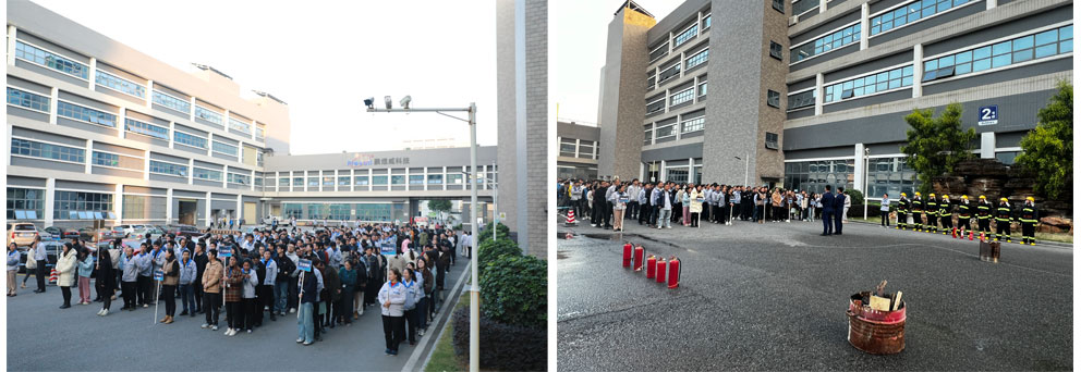 現(xiàn)場(chǎng)模擬園區(qū)4號(hào)樓2樓發(fā)生火災(zāi),響起消防警報(bào),我司義務(wù)消防員前往處置,因火勢(shì)過大,請(qǐng)求松山湖消防大隊(duì)支援。在我司義務(wù)消防員的指引下,全體職工按照既定的逃生路線,迅速有序地往大樓前的空曠地帶撤離集合,全體職工緊張有序、彎腰前行,整個(gè)過程無踩踏擁擠、摔傷等現(xiàn)象,疏散過程有序嚴(yán)謹(jǐn)。