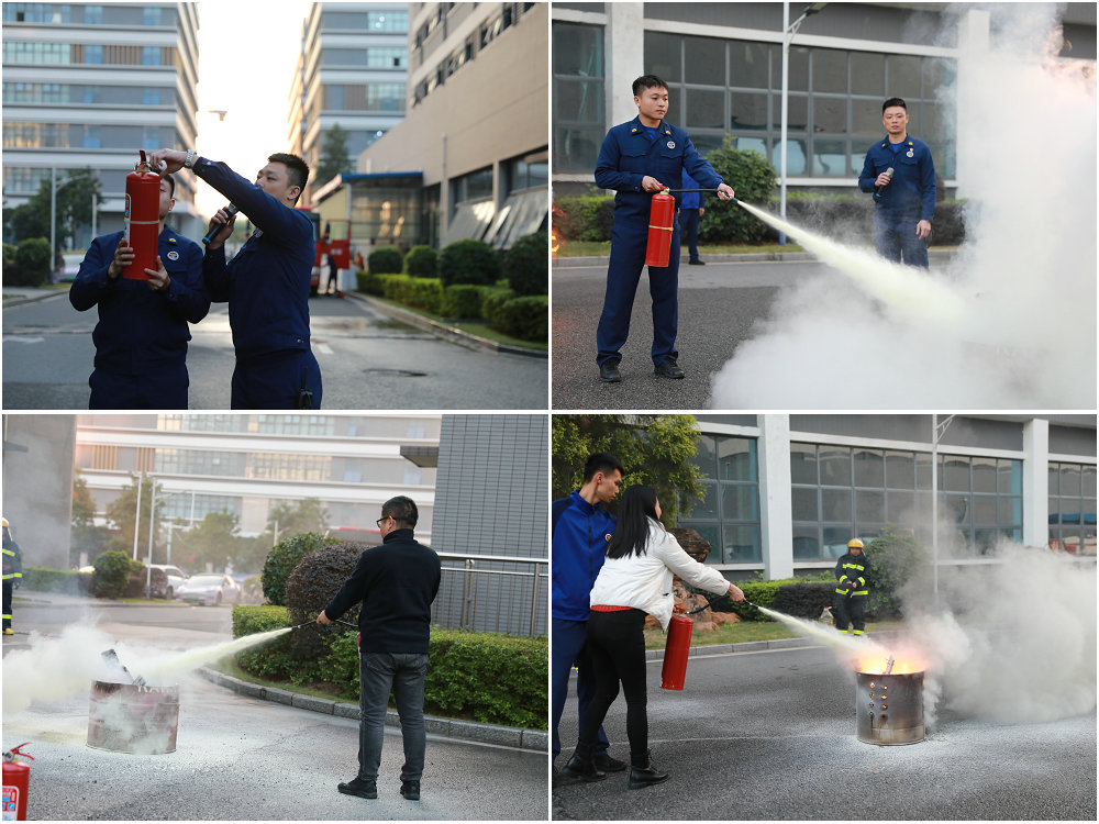 職工將“一提二拔三握四壓”的滅火器使用口訣靈活運(yùn)用到實(shí)戰(zhàn)操作當(dāng)中。