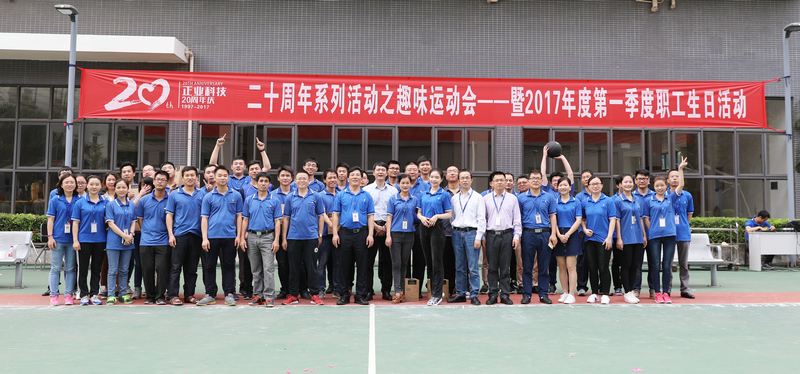 2017年4月8日,廣東正業(yè)科技股份有限公司盛大舉辦了二十周年系列活動(dòng)之趣味運(yùn)動(dòng)會暨2017年度職工生日活動(dòng),公司董事長徐地華先生等公司高層管理人員和所有員工參加了趣味運(yùn)動(dòng)會。