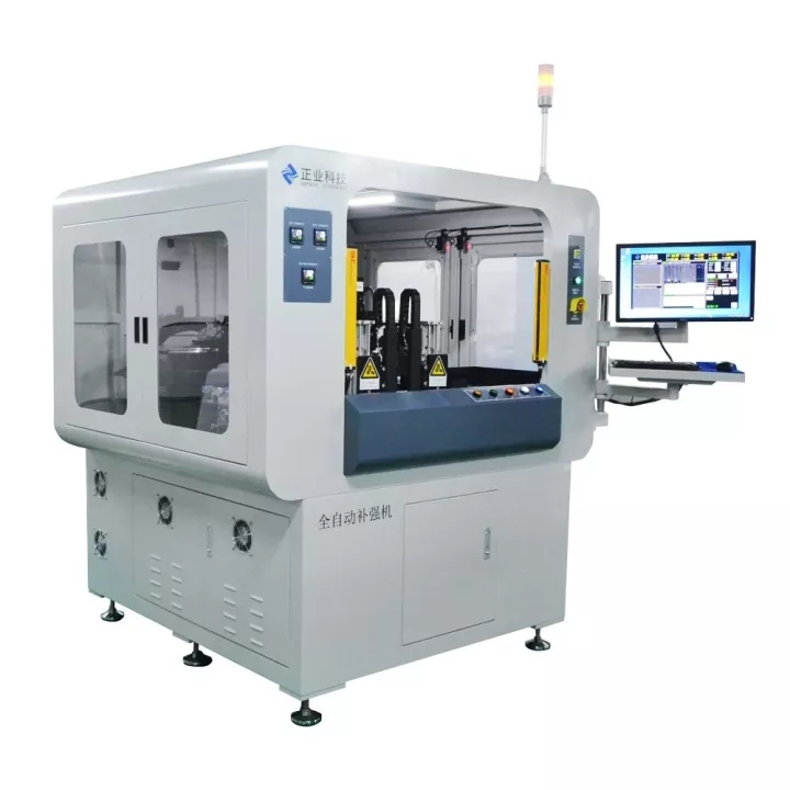 自動補(bǔ)強(qiáng)機(jī)是正業(yè)科技研發(fā)的一款適應(yīng)于對柔性線路板貼合補(bǔ)強(qiáng)材料的技術(shù)成果,也是本次參觀活動的明星產(chǎn)品之一。該款設(shè)備實(shí)現(xiàn)全自動上下板,自動放隔紙,節(jié)省人工成本,可一鍵倒入,換料號只需10分鐘,該款設(shè)備貼合精度高:±50um(高精模式),±75um(高速模式),貼片效率快:2500PCS/H(高精模式),4000PCS/H(高速模式)。