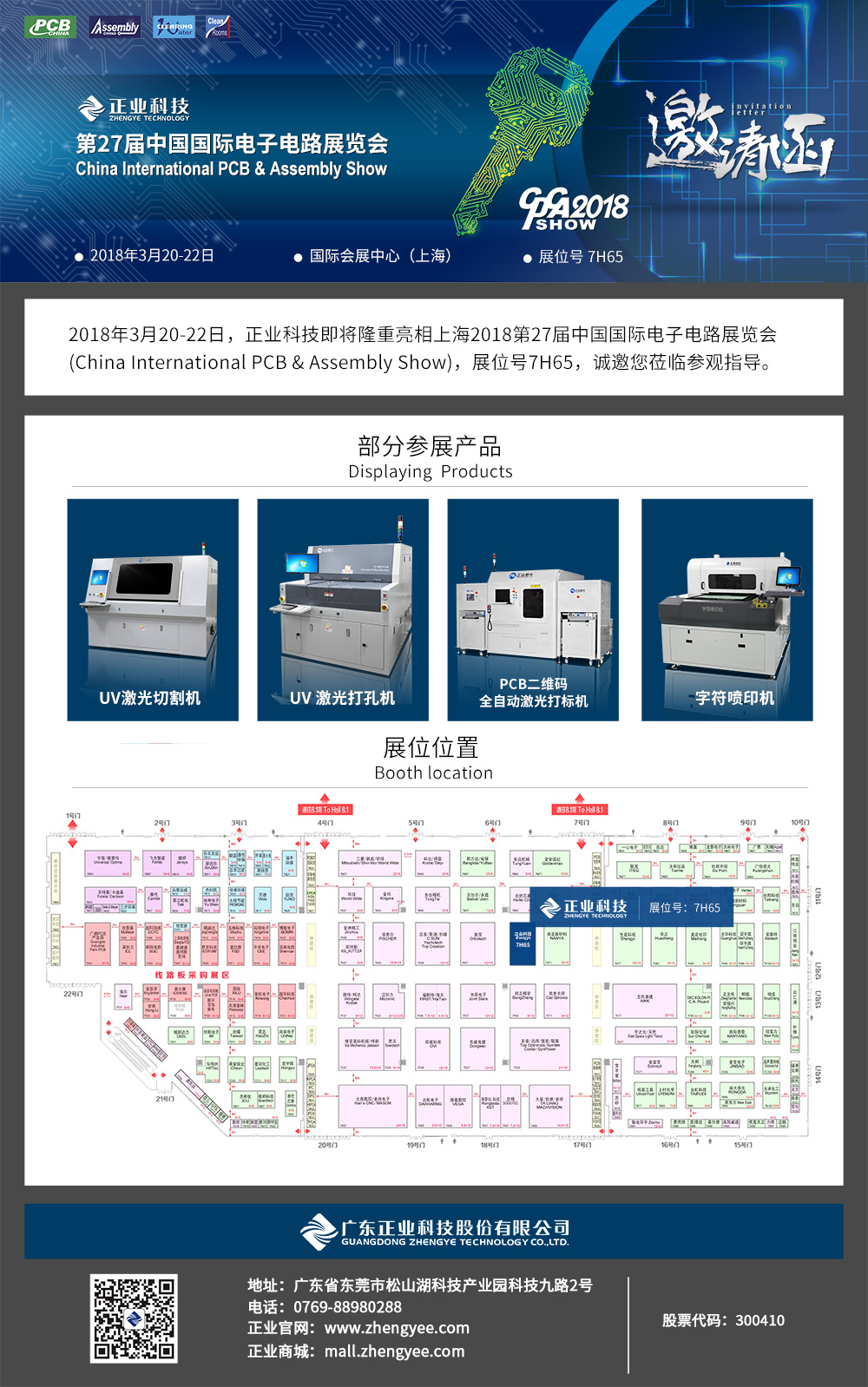 第27屆中國國際電子電路展覽會(huì)將于2018年3月20-22日在上海國際會(huì)展中心隆重開展,廣東正業(yè)科技股份有限公司(以下簡稱正業(yè)科技)將參加這次展會(huì)。